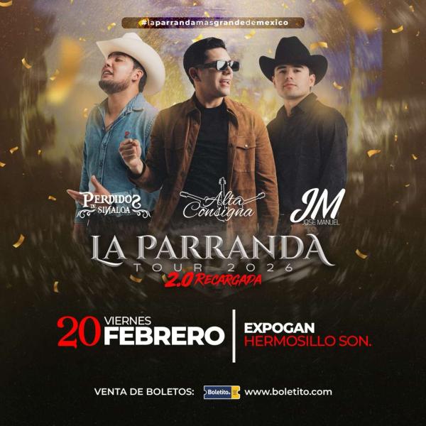 Descripción:¡Prepárate para vivir una noche inolvidable con Alta Consigna, Los Perdidos de Sinaloa y JM en su gira: La parranda tour!